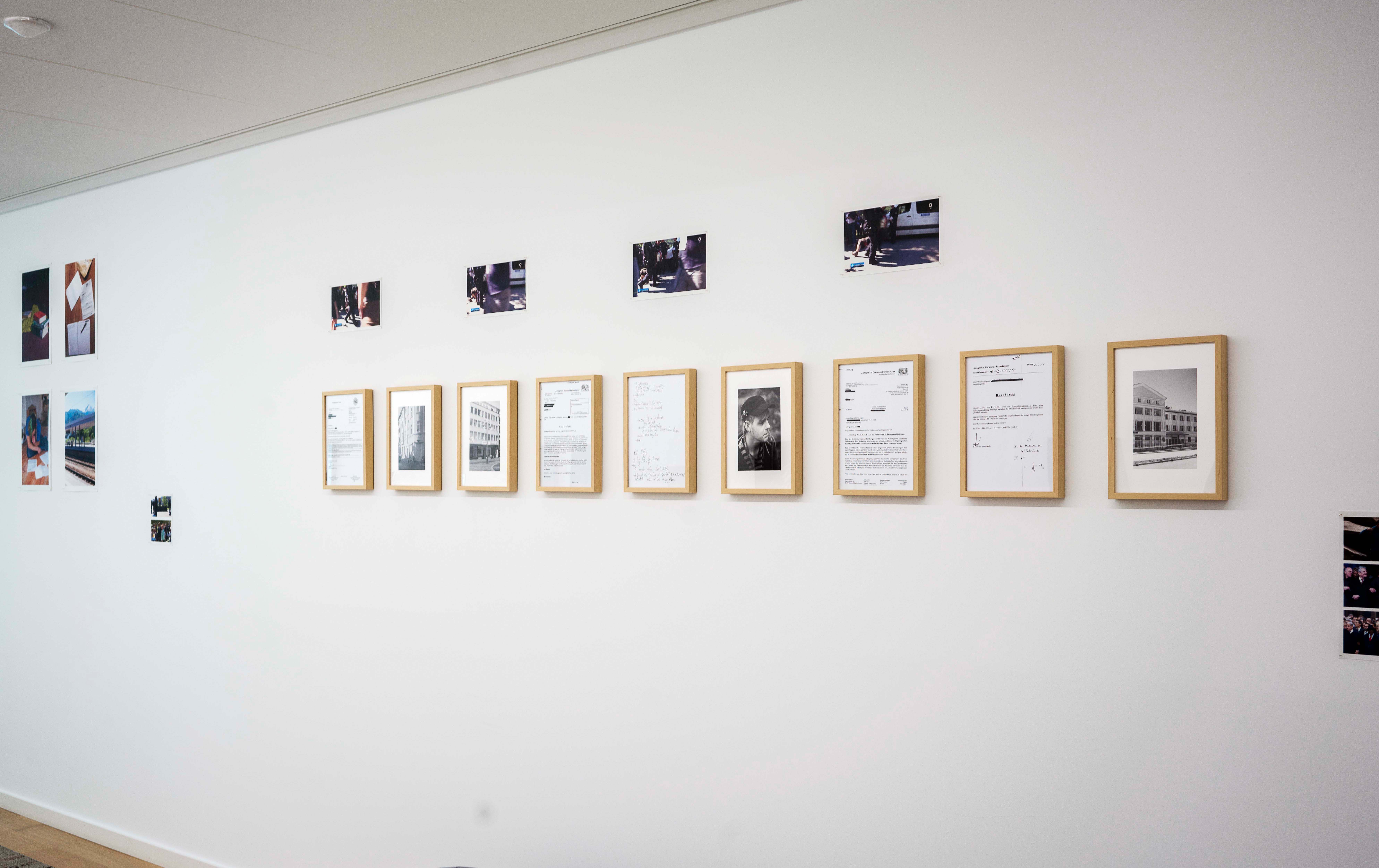 13 Laserprints, 4 Inkjet Prints 10x15 cm (gerahmt), 5 Kopien von Briefen (gerahmt)