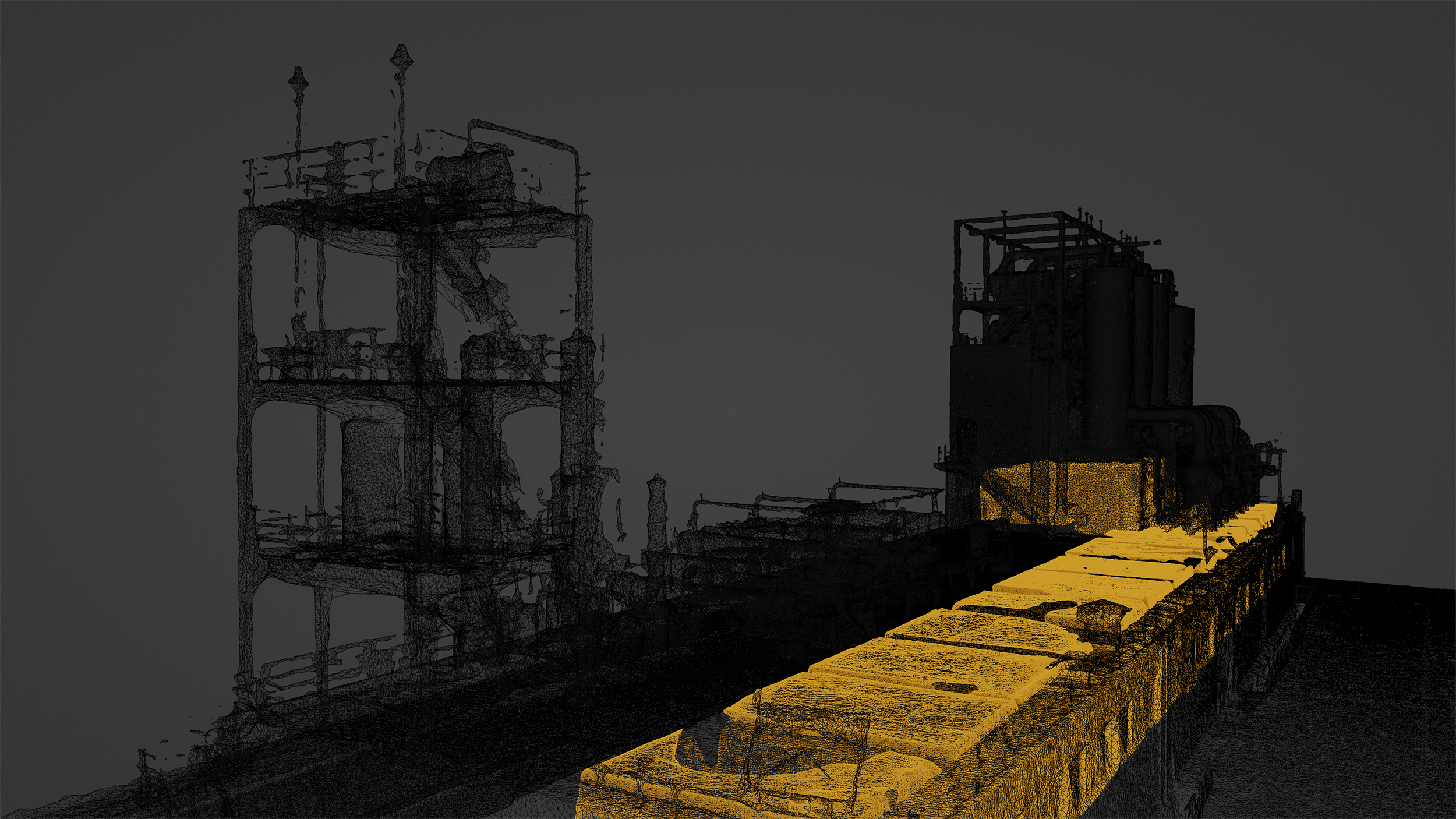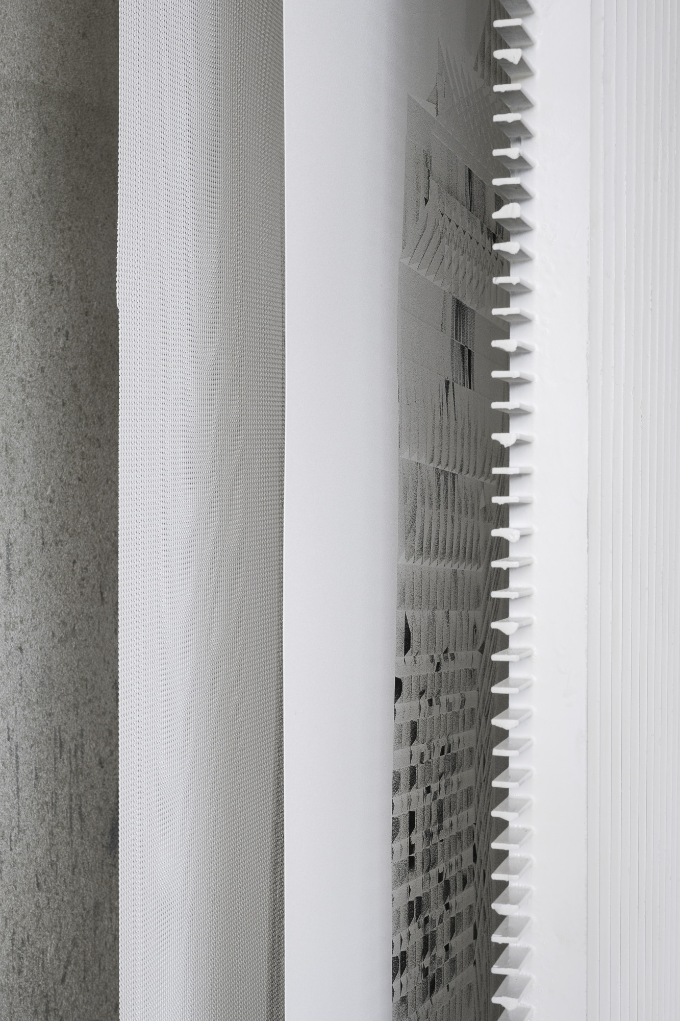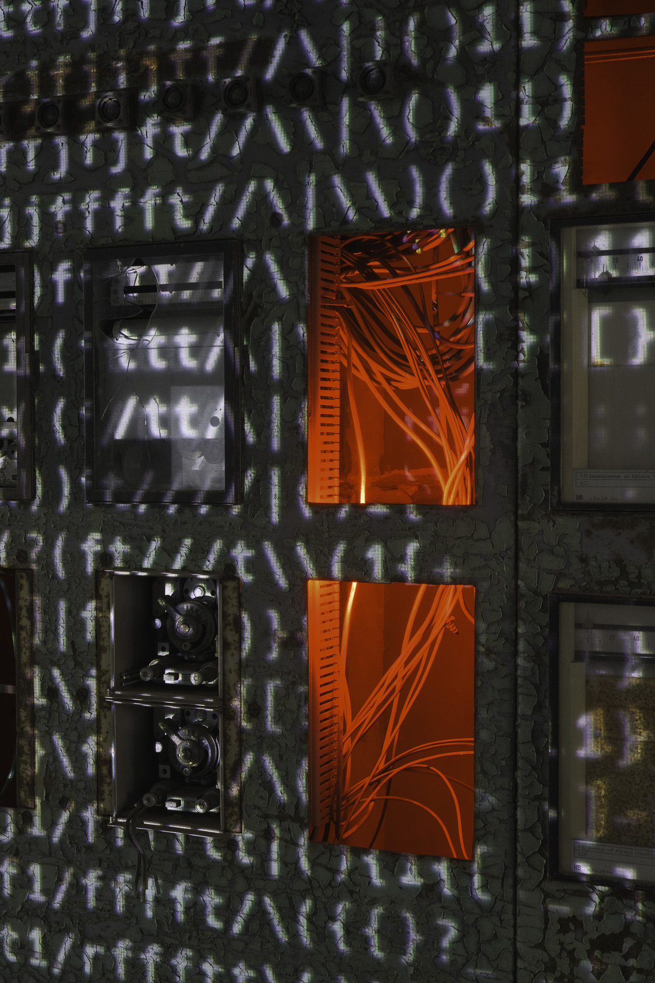 Die vielschichtigen Bedeutungen der Zusammenhänge von Rasterung und Normierung in technischen Prozessen untersucht Jonathan Heitkämper mit seiner Arbeit .x//|y\-||\\z. Sein Ergebnis sind raumberechnete Bilder, die als Installationsobjekte zu den maschinellen Artefakten, die in der Hochdruck-Anlage gelagert werden, Bezug nehmen. Zentraler Aspekt der Arbeit ist die Wahrnehmung von Räumlichkeit durch den jeweils eigenen Blickwinkel.