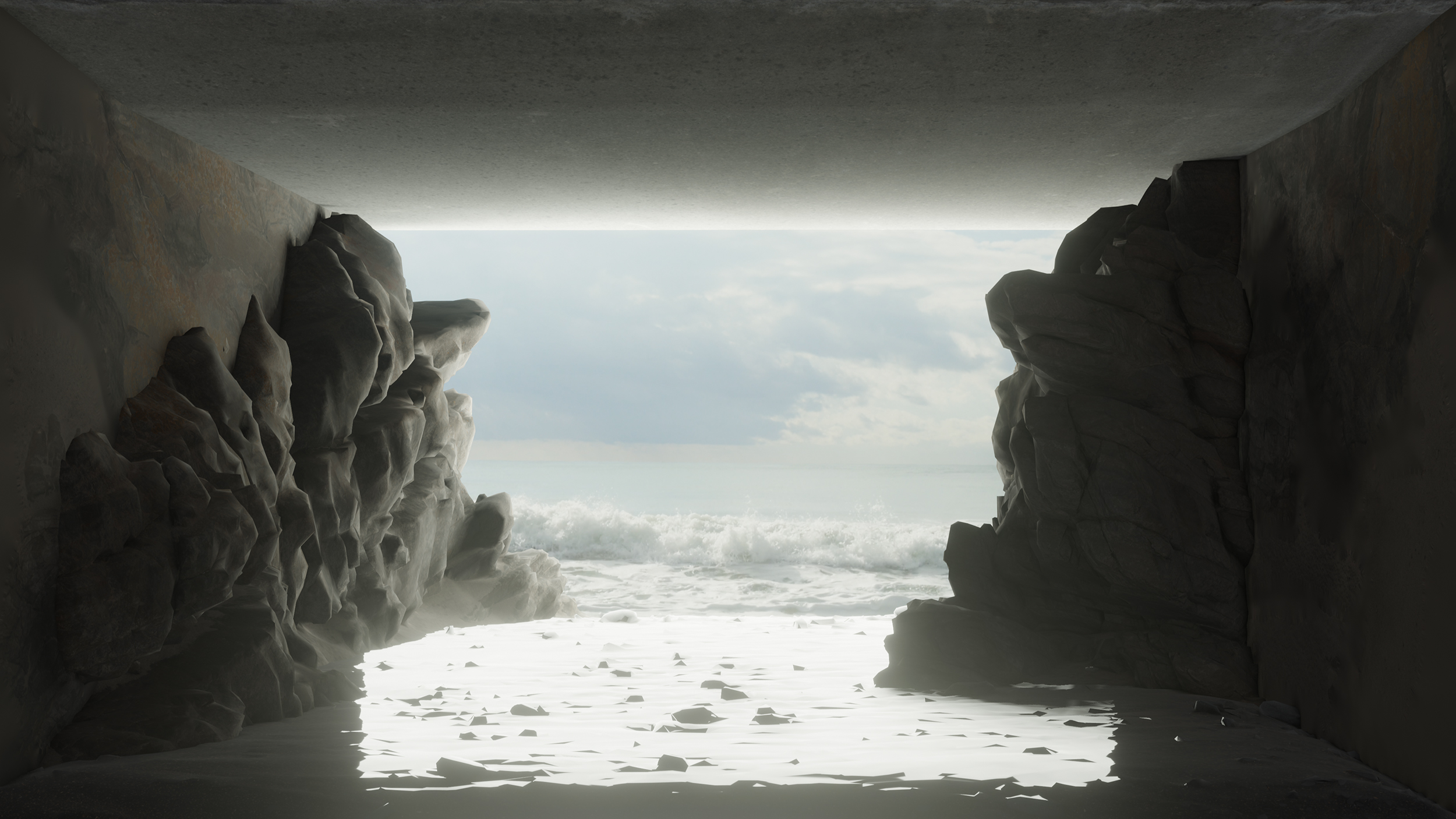 Mit ihrer Videoinstallation erweitert Vivian Hötter den realen Raum der Hoch-druck-Anlage um digital konstruierte Orte von poe-tisch-mystischer Schönheit. Mal mehr, mal weniger real anmutend werden diese Orte nicht nur virtuell er-fasst, sondern mit neuen Bedeutungsebenen versehen. Analog zur damaligen Seilfahrt reisen Betrachtende in die Tiefe.