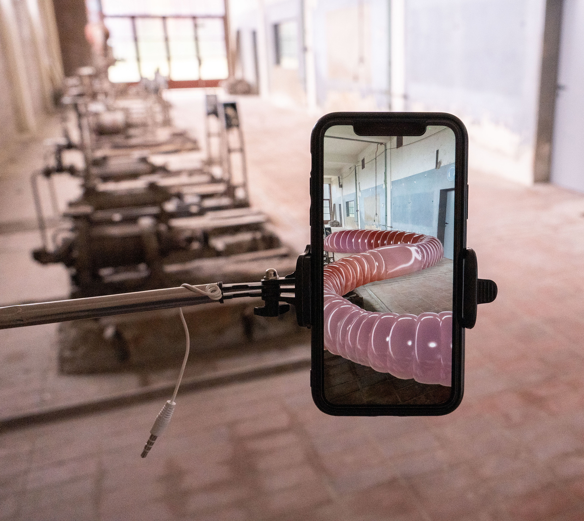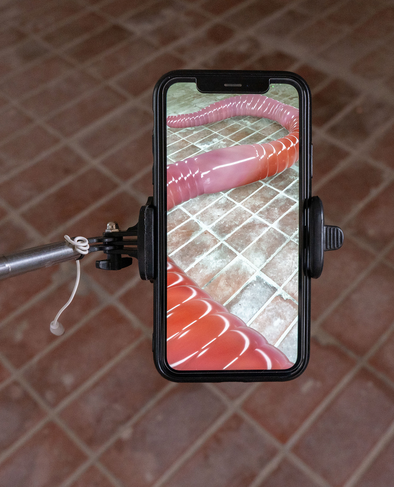 Durch die Nutzung von AR-Technologien erschafft Alina von Zittwitz ein Erlebnis, das die Grenzen zwischen virtueller und realer Welt auf subtile Weise manipuliert und spielerisch erkundet. Earthworm kann auf dem Handy mit nach Hause genommen werden und in verschiedensten Umge-bungen weiterleben.