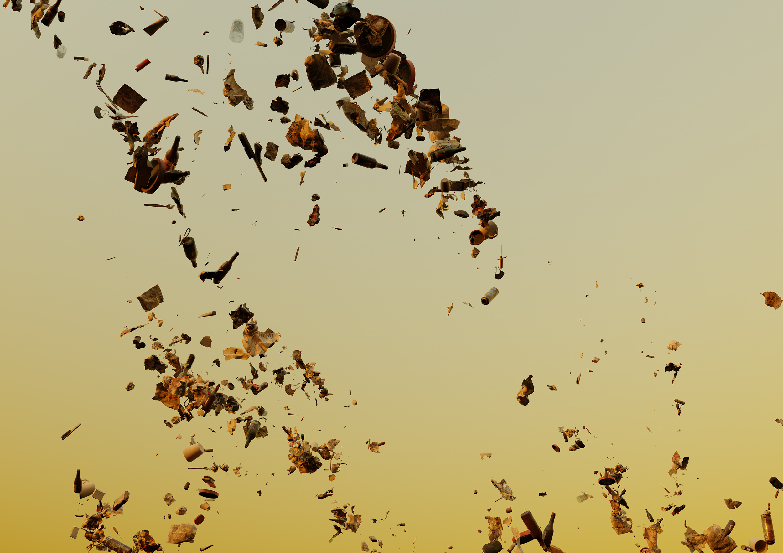 Fast schon poetisch anmutend fliegen Partikel von Müll durch die 3D animierten Sequenzen Litter I und Litter II. In zwei zusammenhängenden Projektionen wirken die Muster von Menschen gemachten Verschmutzungen fast wie ein Teil der Natur selbst. Ein Verweis auf die ungehindert voranschreitende Zerstörung unserer Umwelt, symbolisch aufgeladen mit historischen Verweisen der Zeche und Kokerei Zollverein.