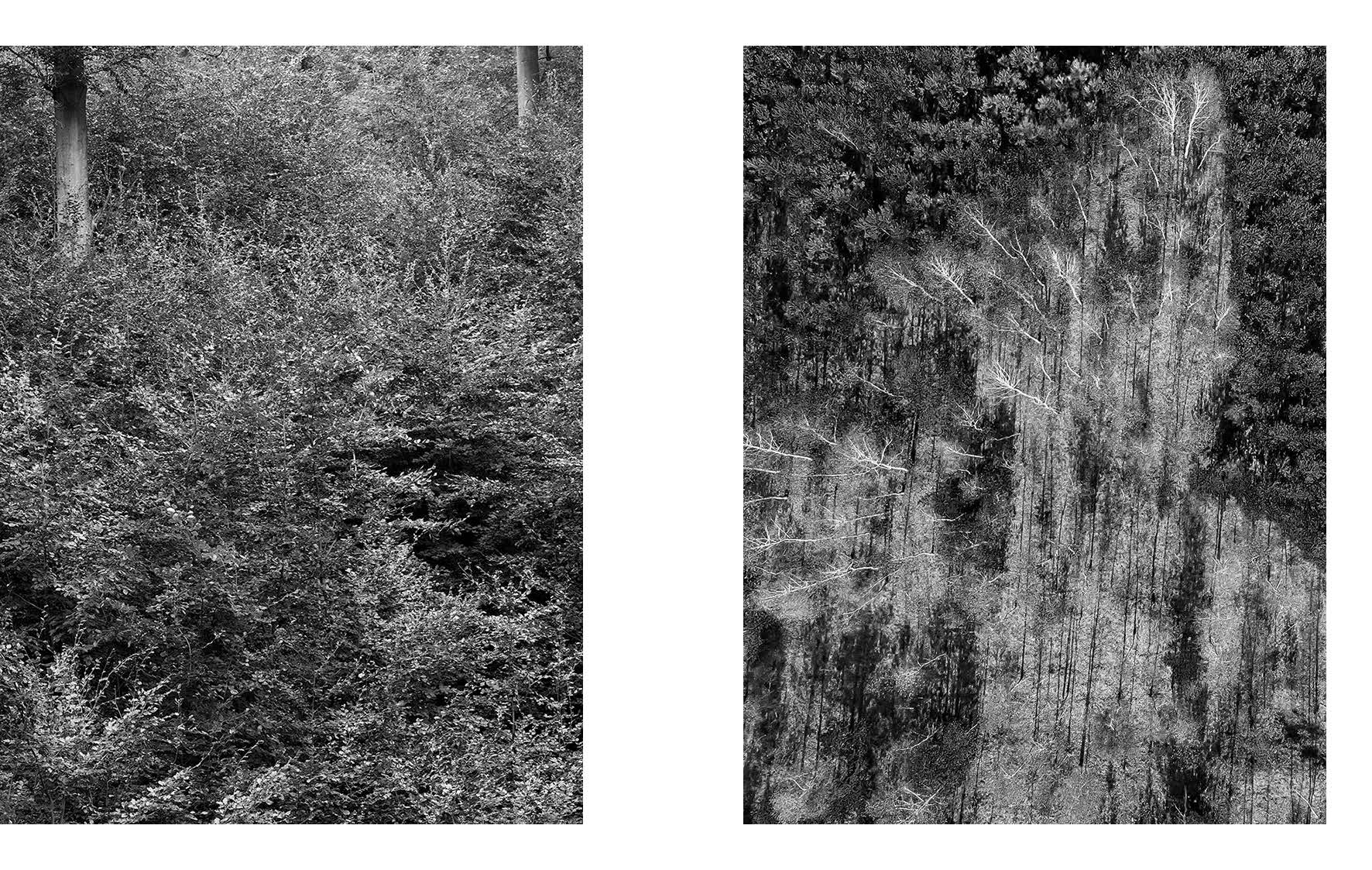 „… Bilder aus großer Höhe, aus denen man die bedrohenden Formationen der Armee oder die Zerstörungen herauslesen kann, ebenso wie aus den Bildern, die Elke Seeger mit Ihren Photographien von natürlichen Texturen zusammenstellt. Sieht man die Luftaufnahmen zusammen mit den krautigen, blättrigen oder irdenen Texturen, die schwer oder gar nicht zu identifizieren sind, möchte man den Titel der Arbeit auf den Bildzusammenhang selbst beziehen. Man sieht die Luftaufnahmen als texturale Bilder, weil man sie zusammen mit anderen texturalen Bildern sieht, die nicht in dem Sinne abbilden, dass man sie vom Abgebildeten her verstehen könnte. Bilder, die keine klar identifizierbaren Abbilder sind, lassen vergessen, man sieht sie einfach als Bilder.