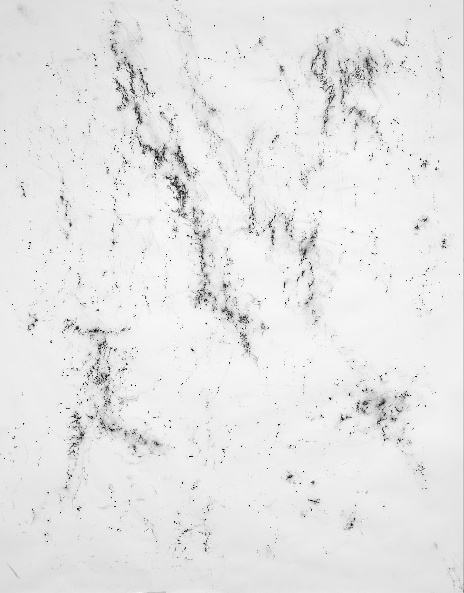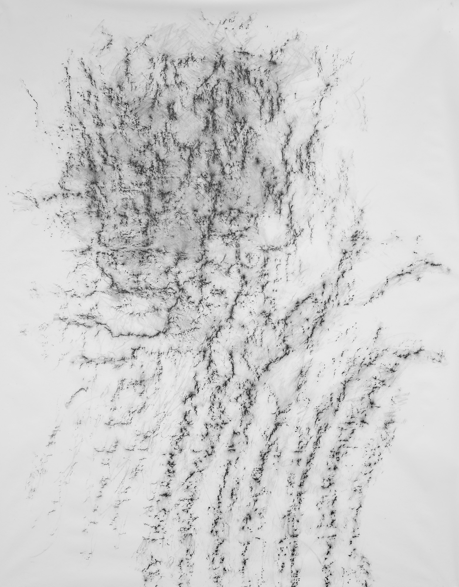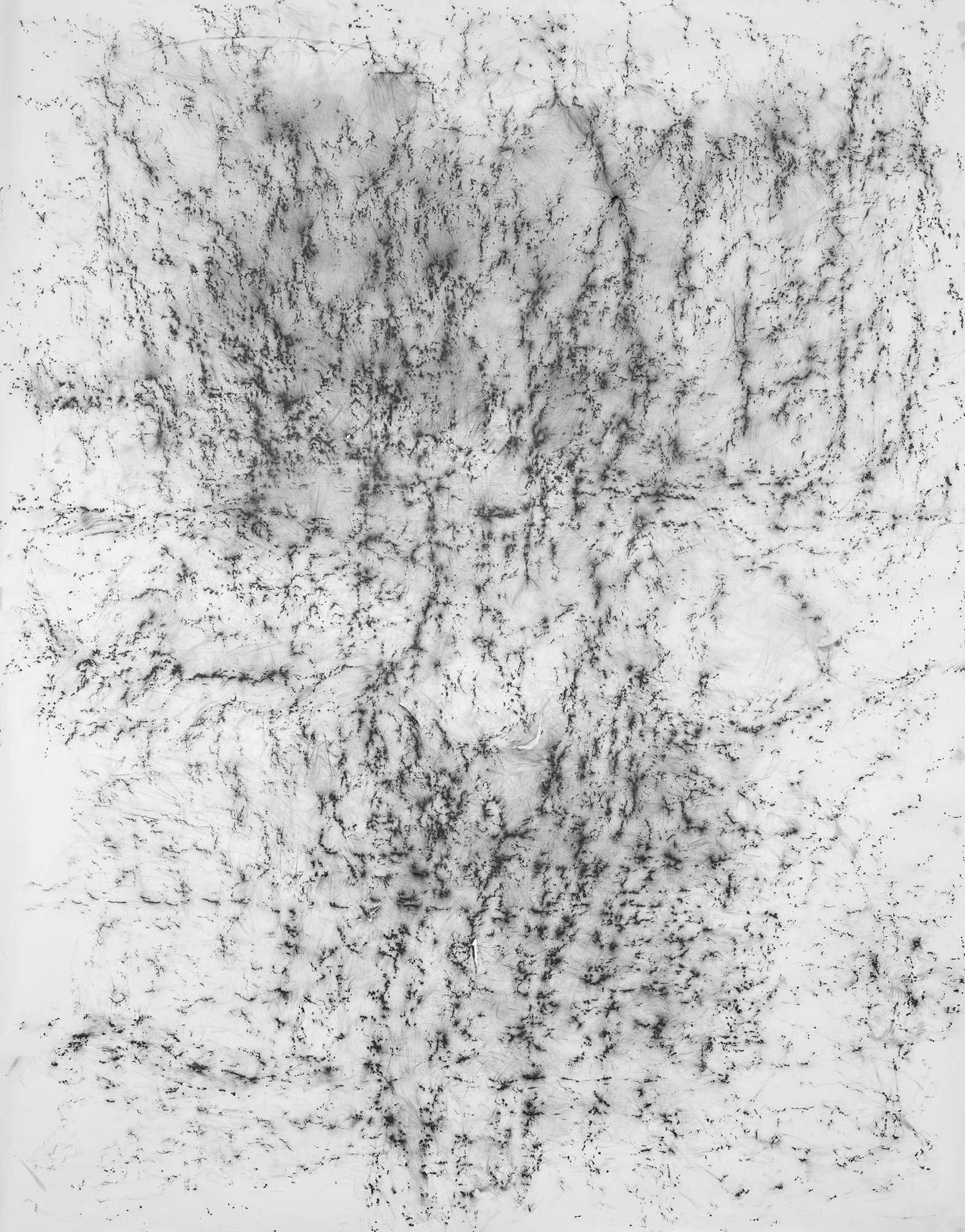 Form, Struktur und Oberfläche bestimmen als maßgebliche Parameter die Arbeiten schwarz und weiß und grau und weiß. Sie sind das Ergebnis eines experimentellen Umgangs mit fotografischem Material und den diversen Möglichkeiten, sich in dieses einzuschreiben. In schwarz und weiß wird eine fotografisch erzeugte Aufnahme durch Zeichnungen ergänzt, die als Frottagen mit dem Graphitstift auf Pergament erzeugt wurden. Als Motiv für die fotografische Aufzeichnung wurde die Abformung eines Kohlestrebs ausgewählt, der sich durch eine besondere Struktur, Schwärze und glänzende Oberflächenbeschaffenheit auszeichnet. Die händisch erstellten Frottagen sind am gleichen Gegenstand wie die klassische Fotografie abgenommen.