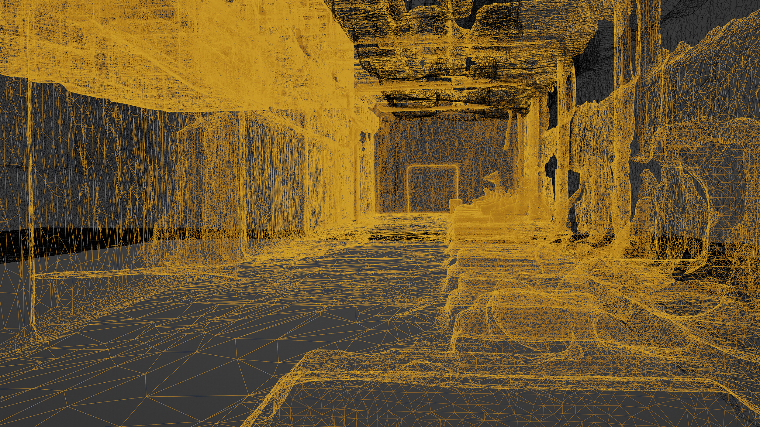 Die Installation Default Cube untersucht die digitale Materialität virtualisierter Räumlichkeiten. Dreidimensionale Rohdaten finden mittels verschiedener Projektions-techniken zurück in den Realraum. Durch die entstehenden Schichtungen, wird der virtuelle Raum fast greifbar und kann durch die Interaktion mit der Installation auf neuem Wege erlebt und betrachtet werden.