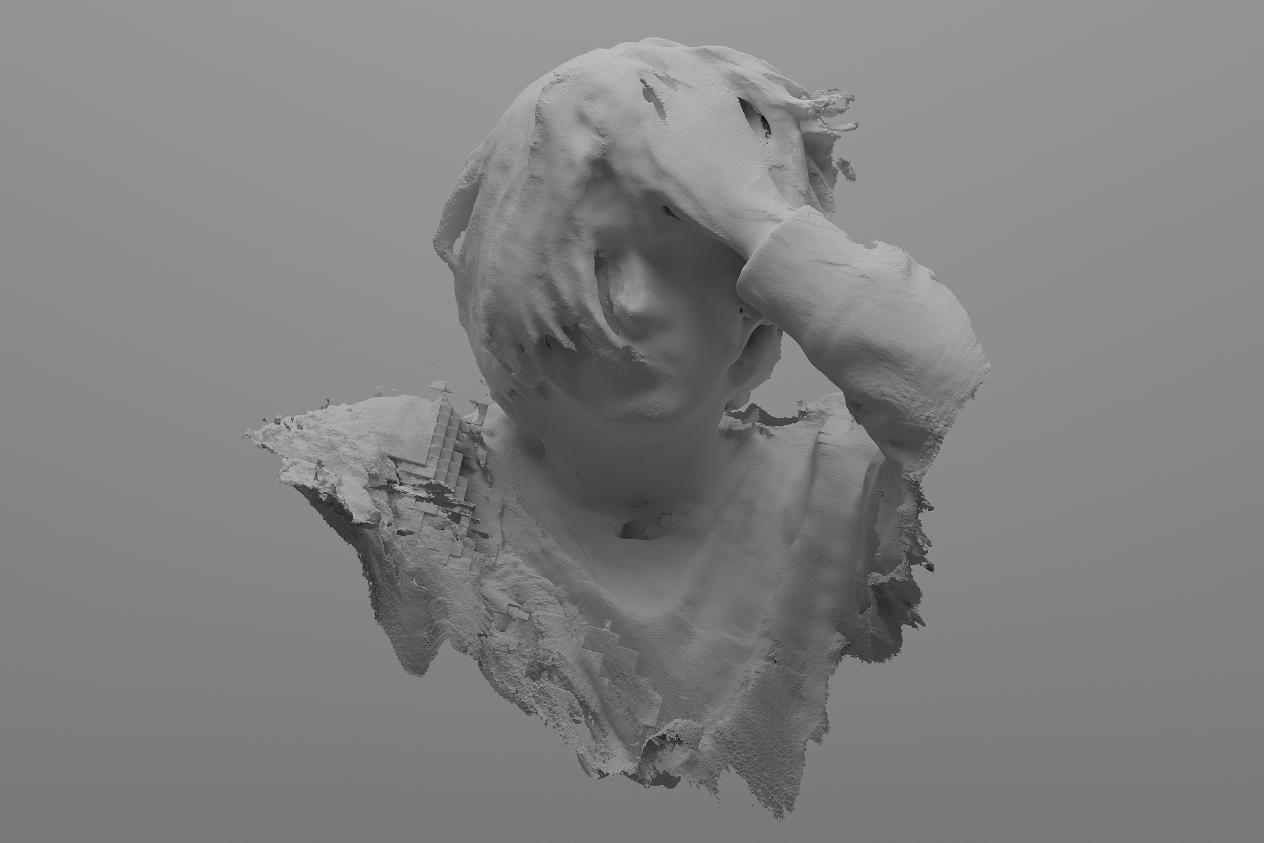 In in tune with the uncanny untersucht Leander Mundus die transformative Kraft des technologischen Sehens an Hand generierter Bilder menschlicher Konterfeis. Mit Hilfe von Infrarotsensoren des iPhones, die normalerweise speziell auf Gesichtserkennung ausgelegt sind, erstellt Mundus Scans von einzelnen Gesichtern, deren befremdliche, technologische Seite so zum Vorschein tritt. Durch die Verbindung der Scans mit maschinell-virtuellem Lernen stellt das Projekt traditionelle Vorstellungen von Porträtkunst in Frage und bietet Einblicke in die transformative Kraft des technologischen Sehens.
